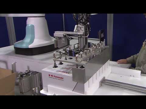 Material handling (MH) makes use of the robot's simple capability to transport objects from one place to another. By fitting the robot with an appropriate end of arm tool (e.g. gripper), the robot can efficiently and accurately move product to different locations. Kawasaki offers both products and services to solve a wide variety of material handling challenges.