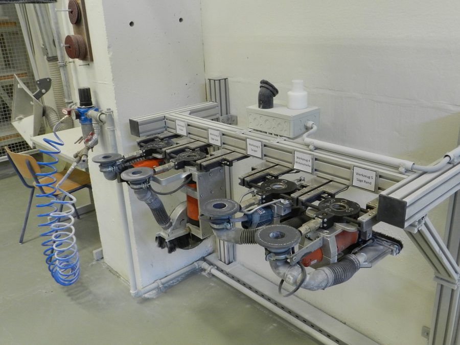 Haase also developed and built a special tool change station. This allows the robot to efficiently switch between four different tools needed for finishing. The shelf-mounted ZT130L robot is not dependent on special tools. It uses commercially available machines such as a milling tool to prepare the manhole in the tank and an angle grinder to prepare the tank surface for lamination and further processing. The robot also uses two saws for precise cutting and grinding, and a suction attachment for cleaning lids and bases.