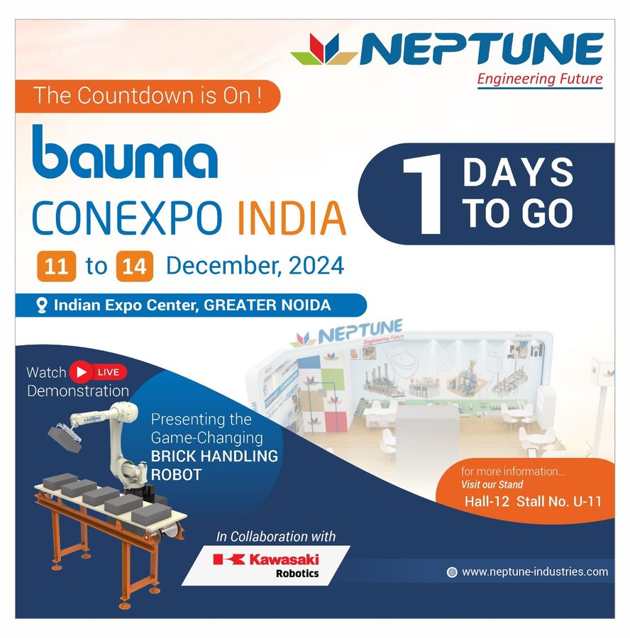 We are delighted to announce that our system partner in Gujarat, Neptune Automation Private Limited is going to participate exhibition name along with Kawasaki BXP21L – palletizing application We would like to welcome everyone to see palletizing application with our latest handling robot, BXP series. For more information, please contact to our sales representative, Mr. Shubham Kumar (+919717496237)