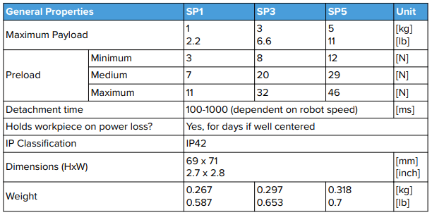 ・A pinça Gecko Single Pad compacta e leve não necessita de cabos, eletricidade, ar ou programação para um desempenho económico e plug-and-play