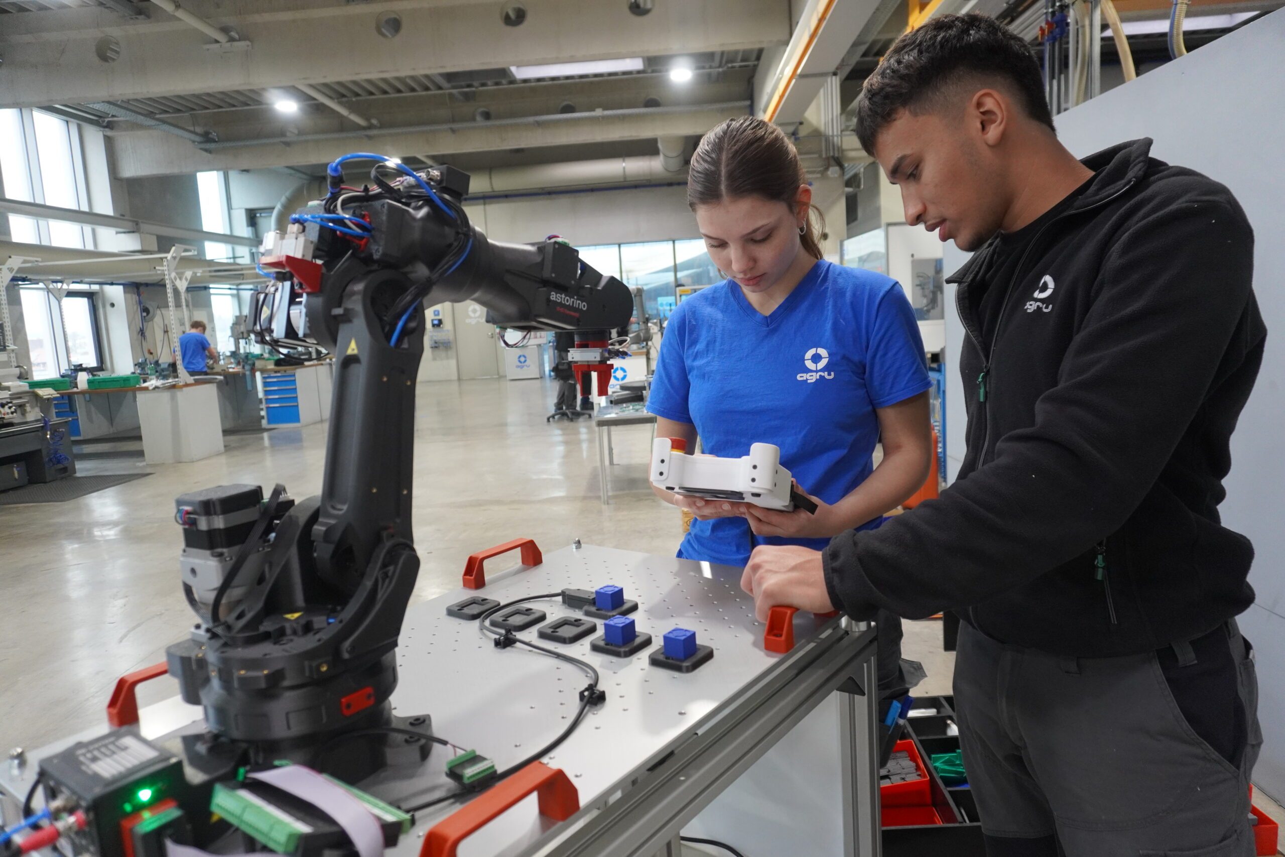 Die Lehrwerkstätte ist kein isolierter Bereich: Die Auszubildenden arbeiten an echten Projekten, erklärt Herr Binder: „Der Astorino passt perfekt zum Konzept: Die Auszubildenden können das Teach Pendant in die Hand nehmen und echtes Programmieren lernen – der Schritt zum Industrieroboter ist dann kein großer mehr.“ Das einmalige Konzept stieß bereits in kürzester Zeit auf sehr positives Feedback auf Messen und bei neuen Auszubildenden: 2025 ging eine Rekordzahl an Bewerbungen ein – trotz hoher Konkurrenz bei der Gewinnung neuer Auszubildender und Mitarbeiter.