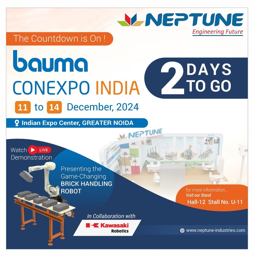 We are delighted to announce that our system partner in Gujarat, Neptune Automation Private Limited is going to participate exhibition name along with Kawasaki BXP21L – palletizing application We would like to welcome everyone to see palletizing application with our latest handling robot, BXP series. For more information, please contact to our sales representative, Mr. Shubham Kumar (+919717496237)