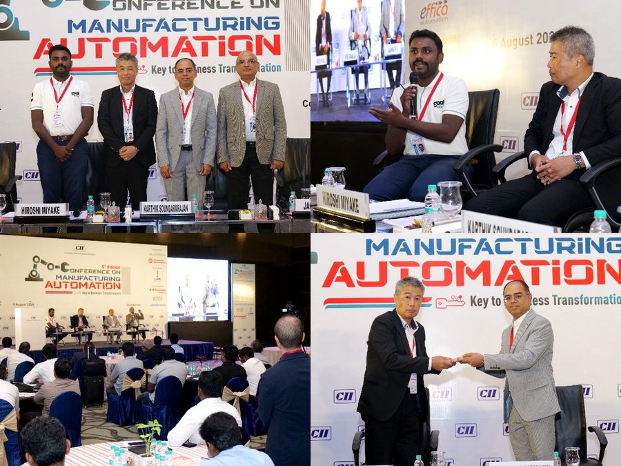 We are very excited to inform you that our MD, Mr. Miyake San has been invited as a Honourable speaker at the 5th edition of the Conference on Manufacturing Automation by CII (Confederation of Indian Industry, Coimbatore). The event was scheduled to be held on August 6, 2024, at the Le Meridien Hotel in Coimbatore. During this session Mr.Miyake San shared his thoughts and vision about material handling by Robotics and automation.
