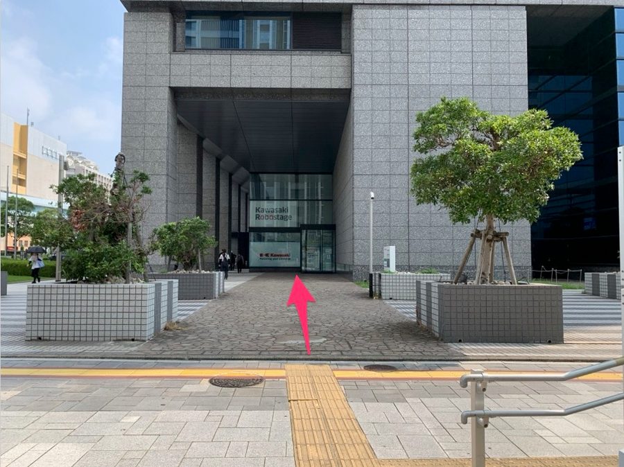 階段を降りたら、右手の建物1階に『Kawasaki Robostage』の入口があります。