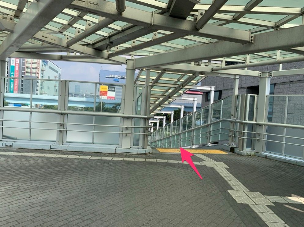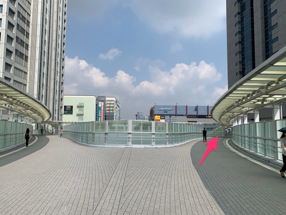 陸橋の階段を上って、歩道橋を渡ってください。