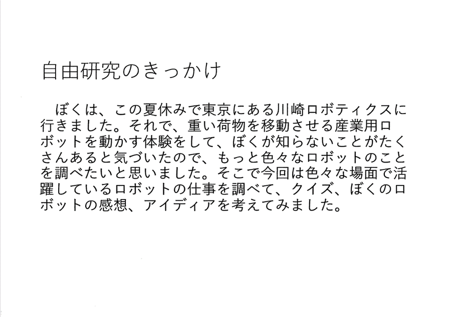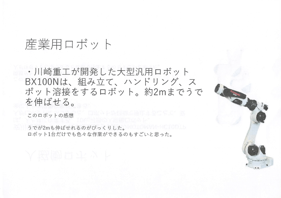 産業用ロボットをテーマに自由研究を作成していただきました。