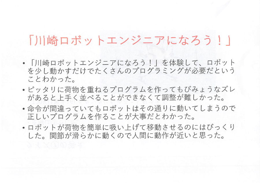 Kawasaki Robostageで開催しているプログラミングイベントにも夏休み期間に参加してくださいました。