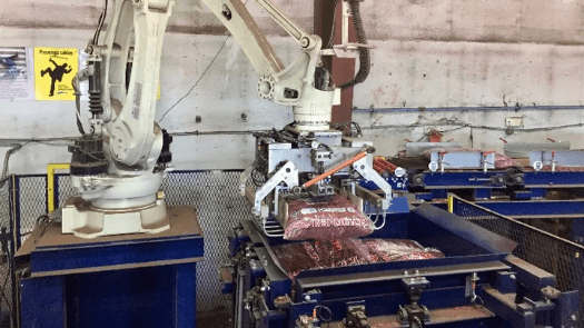 ガーデニング用のチップ材が詰まった不定形な袋をパレタイズ(NOVA Automation)