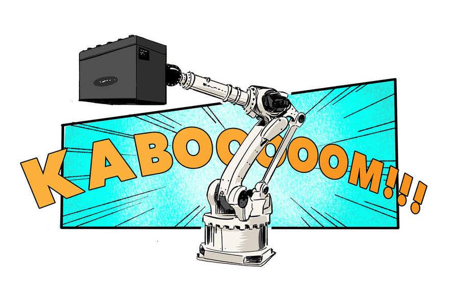 このストーリーは、川崎重工における事例に基づいたフィクションです。顧客の希望は「旧式のCOSマシンに代わり、継続的な生産を可能にする信頼性の高いソリューション」と「組立プロセスに配置する人員の削減」、そして「作業環境の改善」。実際の現場では、1台のZX 300 Sロボットを配置。(1)バッテリープレート整列、(2)ブラッシング、(3)フラックス処理、(4)スズ浸漬、(5)鉛浸漬、(6)ケーシングの6プロセスを1台のロボットでタスク処理しています。これにより、従来9〜10人の従業員を必要としていた同プロセスは、5人体制で稼働が可能になりました。余剰人員を重要な最終工程に再配置することで、製品品質の向上にも繋がっています。