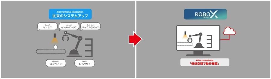 このようにROBO CROSSでは、データや仮想空間を活用することで、ロボットシステムのインテグレーション効率化に大きく貢献し、これまでシステムアップに要していた手間や時間を大幅に削減することができます。