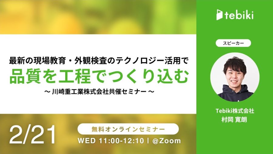 本ウェビナーでは、新人や未熟練者を含むスタッフ全員が作業標準を守るための実践的な現場教育方法と、革新的な外観検査ロボットの事例を取り上げ、品質向上の具体的な手段をご紹介します。