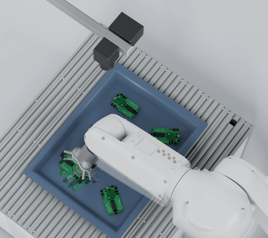 2Dビジョンは、平面上の部品や製品を正確に認識し、位置や向きを補正するために使います。例えば、コンベア上を流れる製品の位置を特定したり、QRコードやバーコードを読み取ったり、ラベルの印字や欠陥を検査することができます。高さ情報は扱いませんが、整列されたワークのピッキングや位置合わせに最適です。