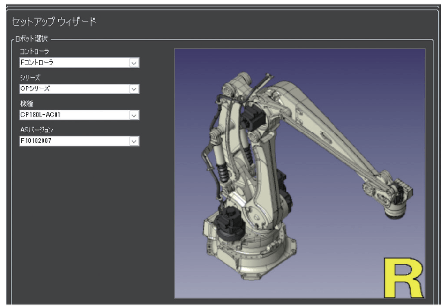 川崎重工のロボットCP、RDシリーズに対応した設定が自動で適用されます。機種ごとの動作特性や制約も考慮されるため、初期設定の手間が省けます。