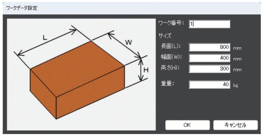 箱型や袋型など、さまざまな形状のワークに対応。寸法を入力するだけで、積み付け条件(高さ、間隔、安定