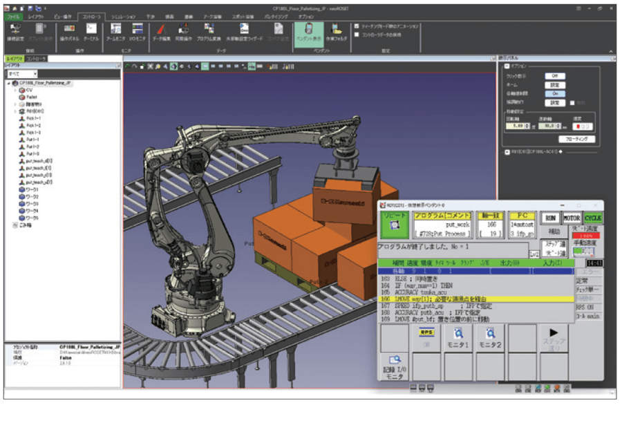 自動作成された積付位置データを仮想ロボットに転送し、neoROSETで事前の干渉確認と正確なサイクルタイム確認が可能です。