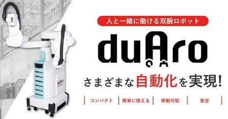duAro(デュアロ)は川崎重工が独自に開発した革新的な人共存型双腕スカラロボットです。安全柵なしで、人一人分の設置スペースで人間と協働作業ができます。
