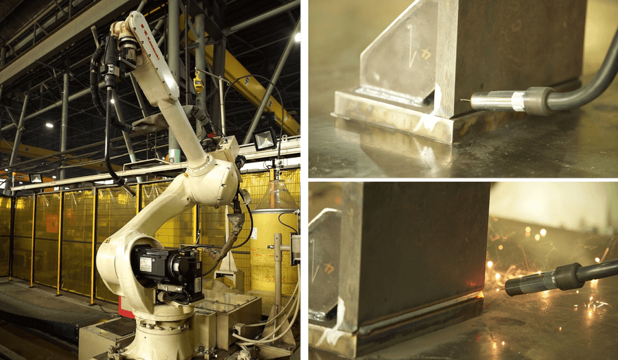 The robot can perform the welding with stable conditions (the same speed, angle and order), so the quality is stable. It can also continue working without breaks.